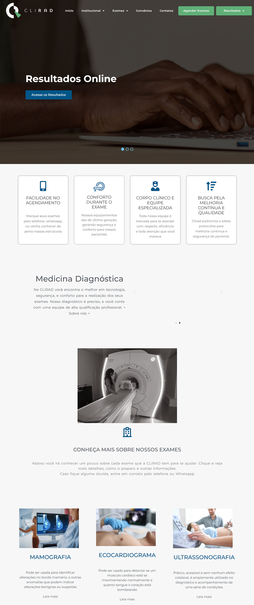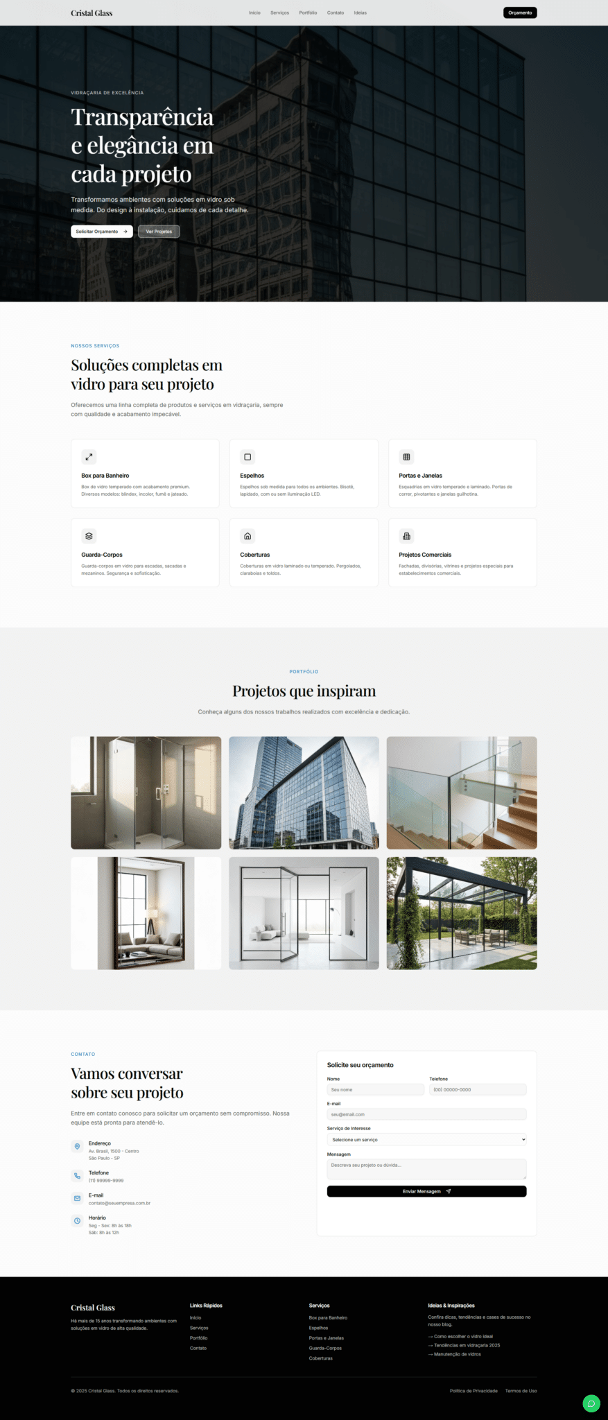- Desenvolvimento de sites institucionais e landing pages